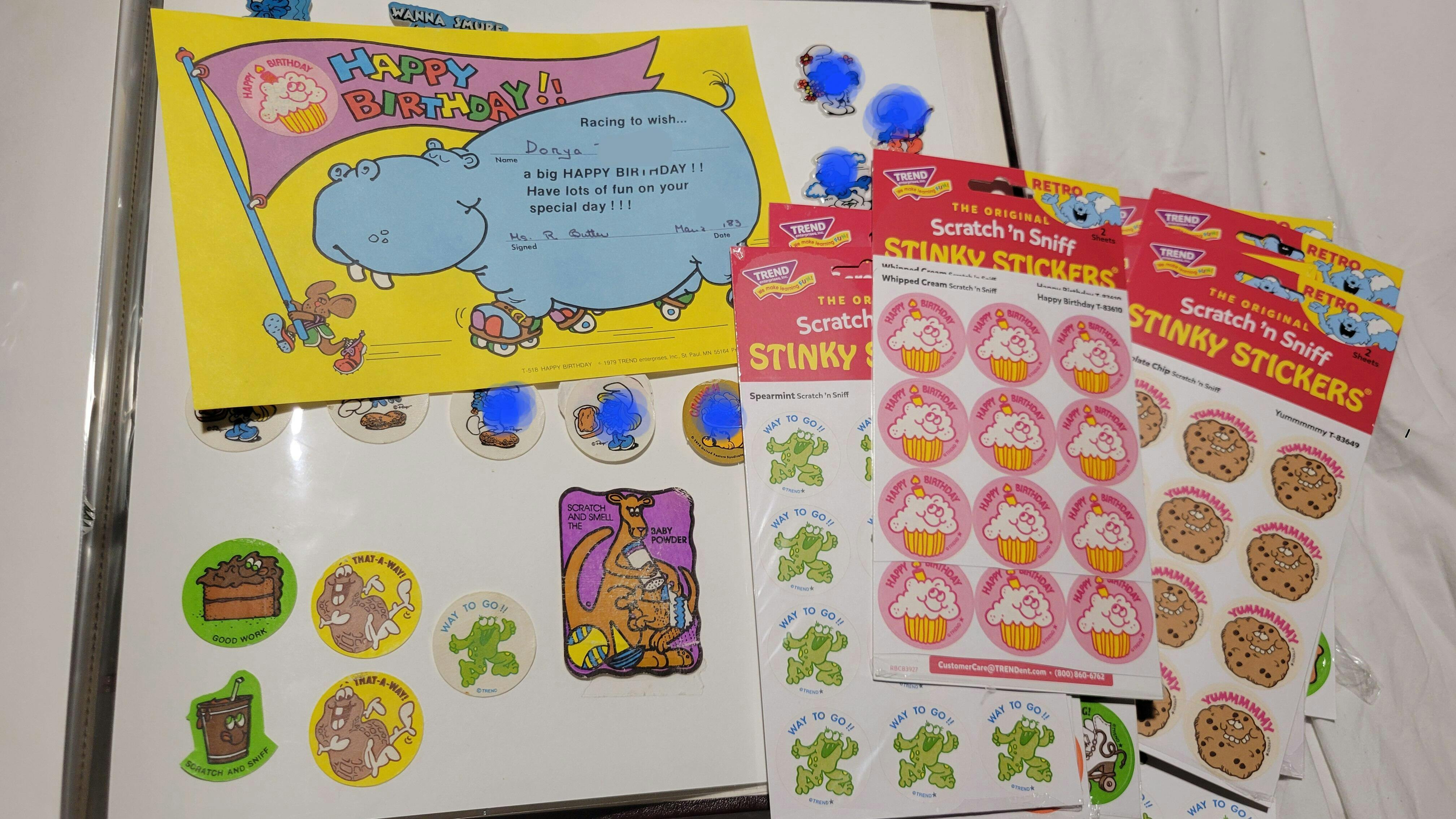 Get a whiff of this Happy Birthday, whipped cream-scented cupcake sticker! TREND Scratch 'n Sniff Stinky Stickers® from the '80s are BACK! And they're SCENT-sational! Fun to collect, trade, and celebrate accomplishments and special occasions. Collectors will be happy to spot the ★ to distinguish TREND Retro Stinky Stickers® from those printed in the 1980s.